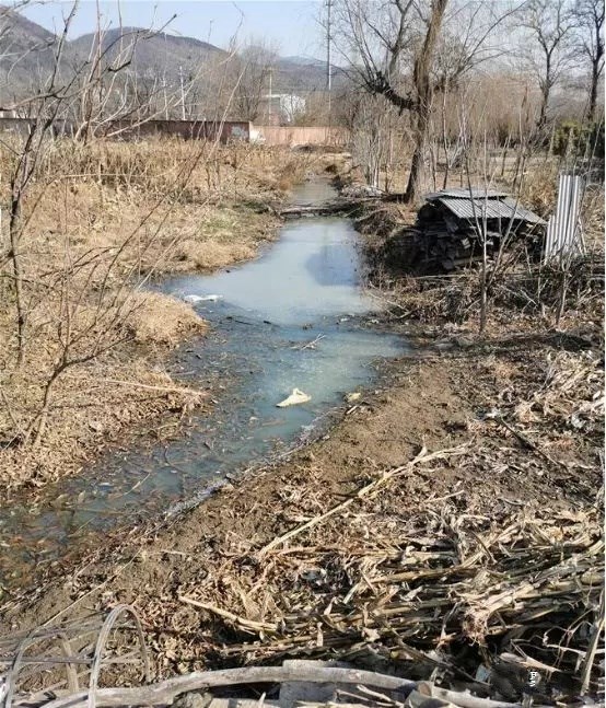 在華北某濱海城市一座村中,該村西側(cè)排水渠與鮑丘河交界處,一條約60米長、8米寬的渠道被傾倒的各種垃圾堵塞,水渠已經(jīng)成為名副其實的“垃圾水道”。而在該村東北水渠河長公示牌附近就有生活污水直接排入,水面漂浮綠色青苔、白色泡沫,散發(fā)刺鼻惡臭。